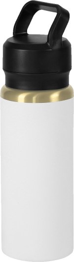 Heavy duty, screw on plastic dual top for both wide opening and drinking spout Lead-free vacuum seal Sweat-free design Constructed out of double wall Stainless Steel 1-year limited warranty Copper lined, vacuum insulated liner maintains drinking temperature Durable Stainless Steel water bottle with Gold underlay and a dual top carry handle. 3.25″ D x 3.25″ W x 11.5″ H