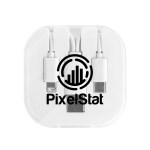 Now Available With A Type-C Input. Protective Plastic Travel Case. Features Apple® 8-Pin, Micro-USB And Type C Outputs And USB-A Or Type-C Inputs. 0.75″ D x 2.75″ W x 2.75″ H