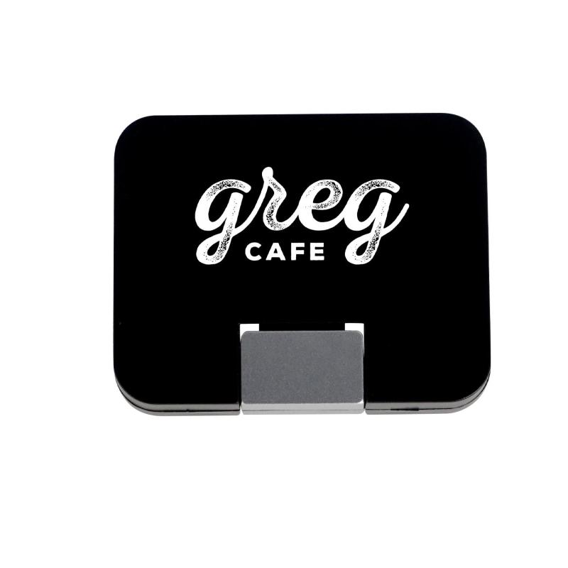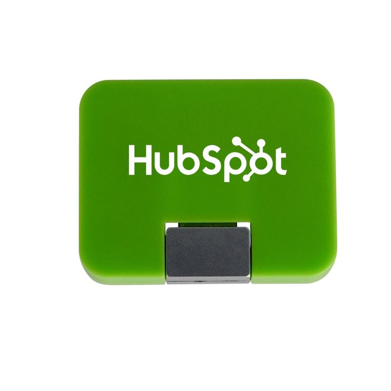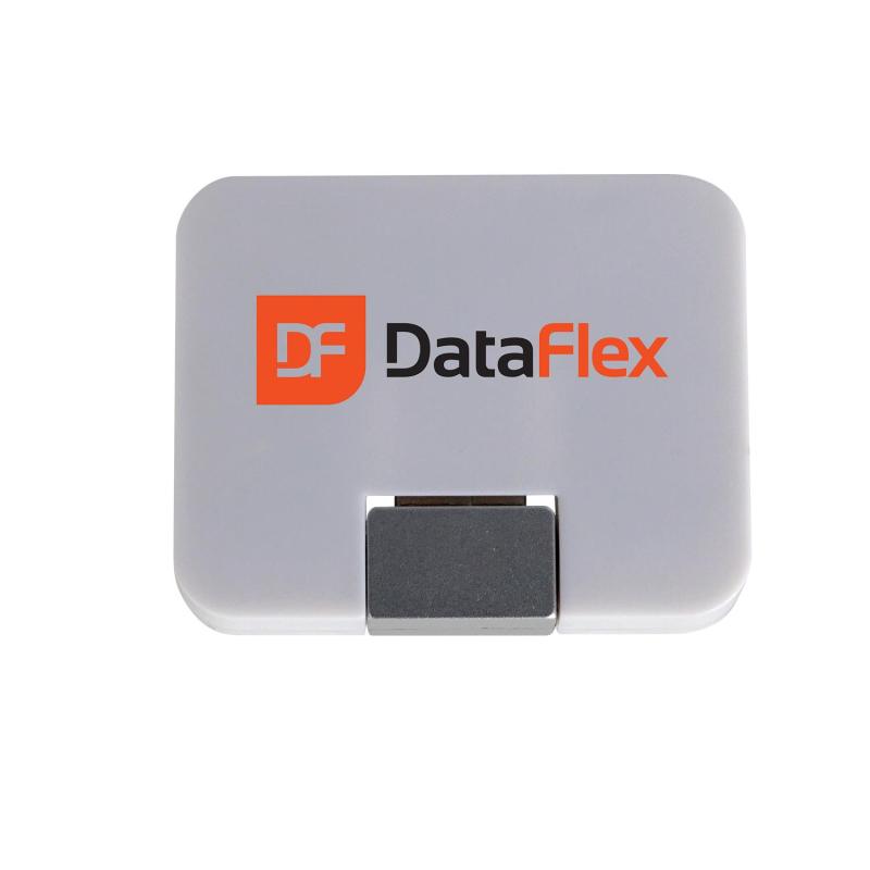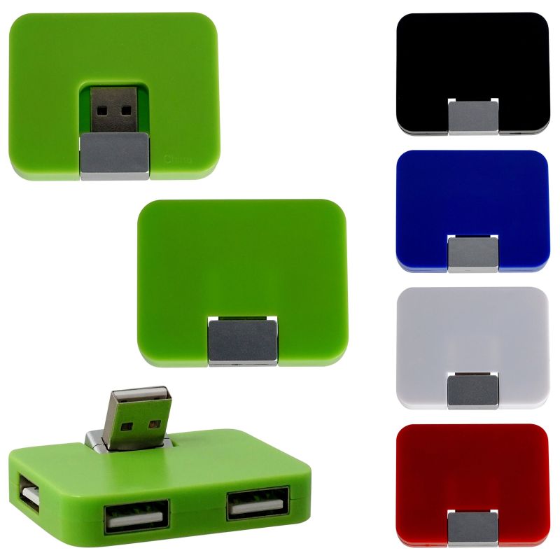Compact rectangular USB hub. Includes 4 USB ports and USB connector that swivels. No rush available for full color digital imprint. Complies with Prop 65. 2″ L x 0.375″ W x 1.625″ H