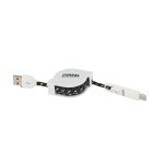 Colorful, long lasting fabric braided charging cables. Compatible with 5-Pin, Micro USB and Type-C devices. Simply plug the cable into a powered USB port and then into your device or smartphone. Provides convenient and practical service in your daily life. LED changes color from red to blue when device is fully charged. Cable length is approx. 3 feet. 5 5/8″ H x 1 5/8″ W x 11/16″ D