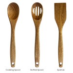 Complete your kitchen with the TB Home 3 Piece Acacia Wood Kitchen Utensils Set! Each utensil in this set is beautifully crafted from rich acacia wood for a look that’s at home in any decor style. The cooking utensil set includes a spatula for flipping and turning, a slotted spoon for stirring and serving and a cooking spoon for mixing your favorite sauces and gravies. 12 1/2″ L