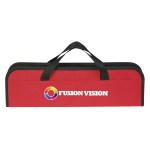 Includes: Spatula, Fork And Pair Of Tongs. Zippered Travel Case With Dual Handles. Complies with Prop 65. 2″ D x 15.75″ W x 4.75″ H