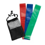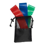 Features fitness bands (2″x 12″) in 3 tension strengths- low, medium and high. The different resistance bands are great for working muscles throughout the whole body safely. 6 1/2″ H x 4 3/4″ W