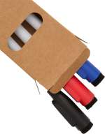 Brainstorm sustainably with the 3-Piece Recycled Dry Erase Marker Set. Barrels are made from 100% recycled PP and the low-odor ink wipes clean every time. Caps include built-in magnets so markers stick to whiteboards and file cabinets for quick access. Packaged in an FSC® mix kraft paper giftbox—a tidy, eco-conscious choice for classrooms, meeting rooms, and home offices. Note: shelf life is 1 year. By choosing this set, you’re making a positive impact on the environment, as one percent of sales. 0.00″ D x 0.39″ W x 5.04″ H