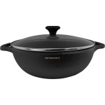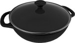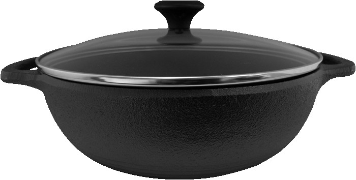 Pre-seasoned and ready to use Cast Iron cookware. Heats evenly and steadily for all cooking methods and surfaces, including grills and campfires. 3-quart capacity. Tempered Glass lid with high temperature resistant Bakelite knob and Stainless Steel rim. 2 Loop handles. 10.25″ D x 12.5″ W x 5.5″ H