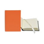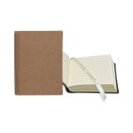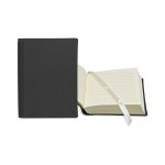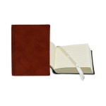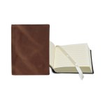 Your brand is “bound” to make a lasting impression during the next promotional campaign when it hands out this leather bookbound journal. Available in several colors and sizes, this handy notetaking tool comes with 120-140 cream-colored lined sheets, and a cream-colored ribbon bookmark to keep you in place. Customize with an imprint of your company logo and message to sign off on a memorable giveaway today! Complies with FSC, Prop 65. 3″ W x 4″ L