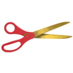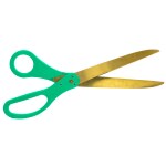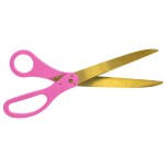 These oversized 30″ scissors are especially crafted for ribbon cuttings and ceremonial events. They feature large silver or gold metal blades and sturdy colored handles. 30″ L