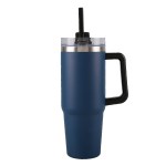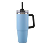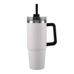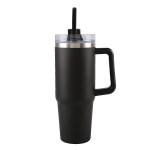 This stainless steel tumbler mug keeps your drinks hot or cold for hours (can keep cold more than 18 hours and keep hot more than 8 hours). Includes a black plastic straw. It ships assembled. 9 1/4″ H x 3 1/2″ D