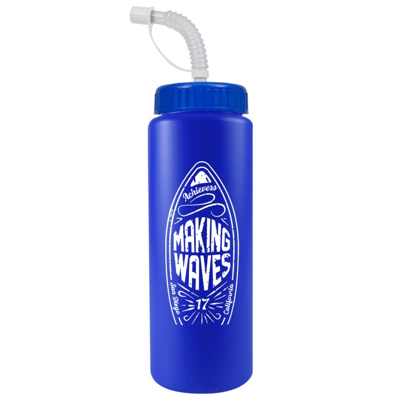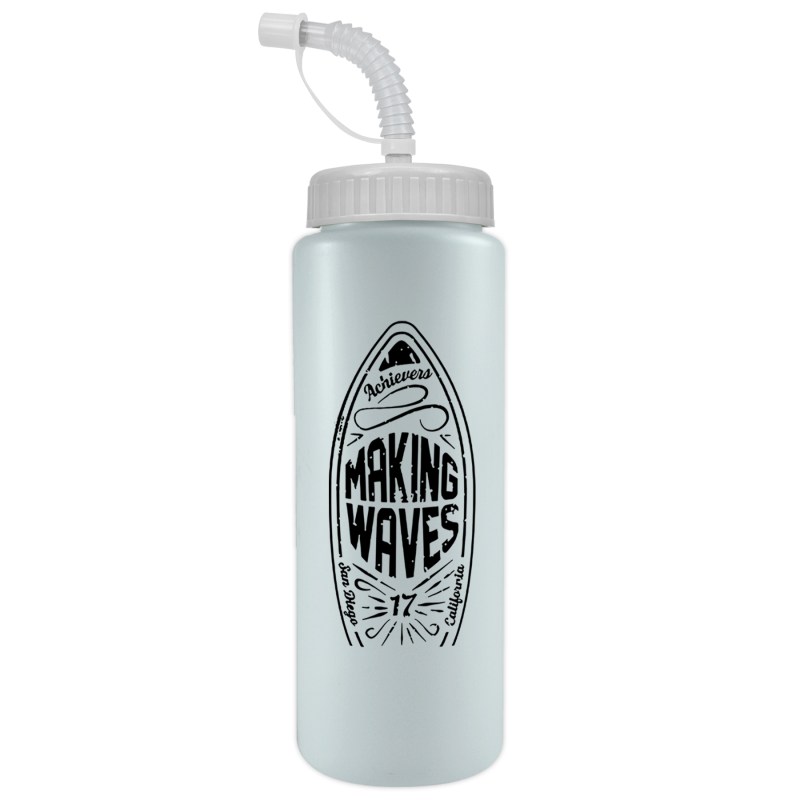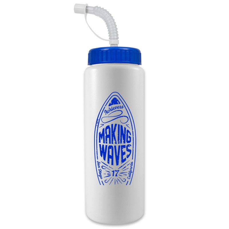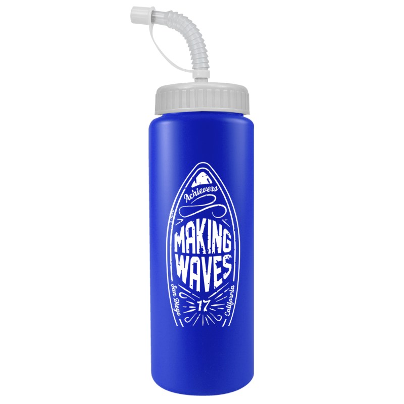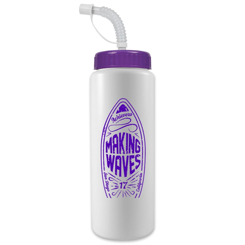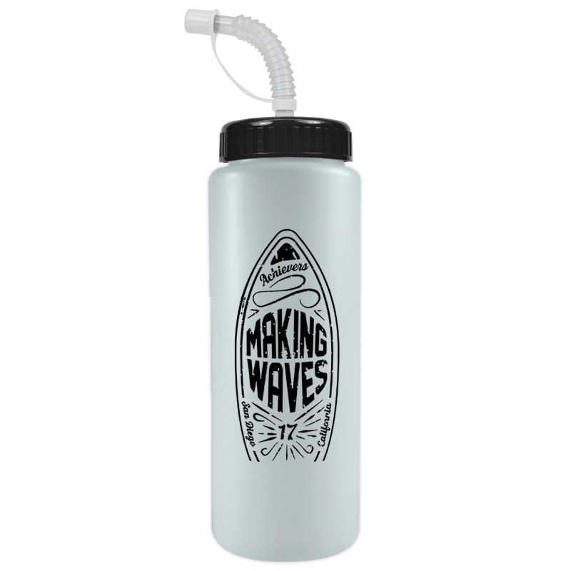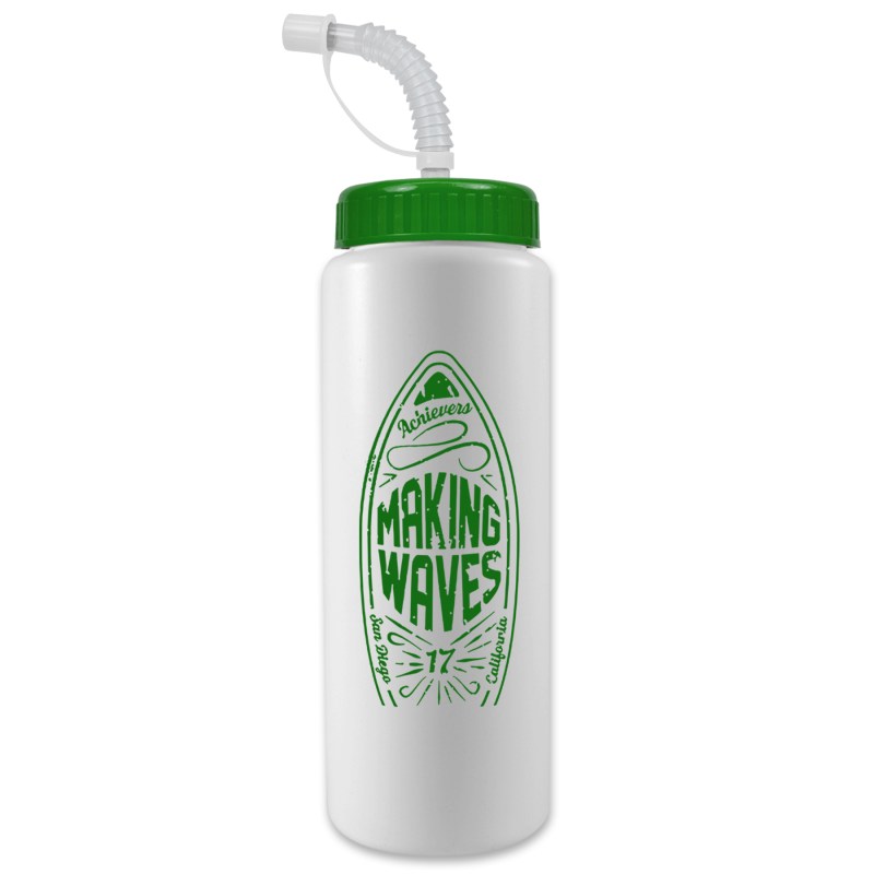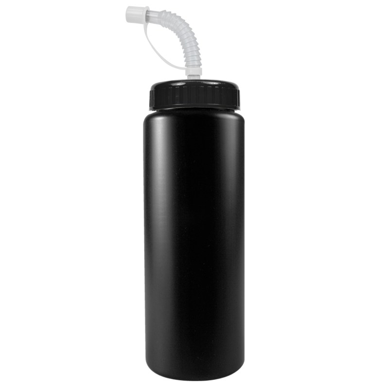 32 oz Sports Bottles with Straw Lid Molded from BPA Free?HDPE Recycled Code 2? FDA Compliant ? Safe for Food ContactDishwasher SafeShips assembled no extra charge. Complies with ANSI, CPSIA, FDA, Prop 65. 9.75″ H x 3.25″ Diameter