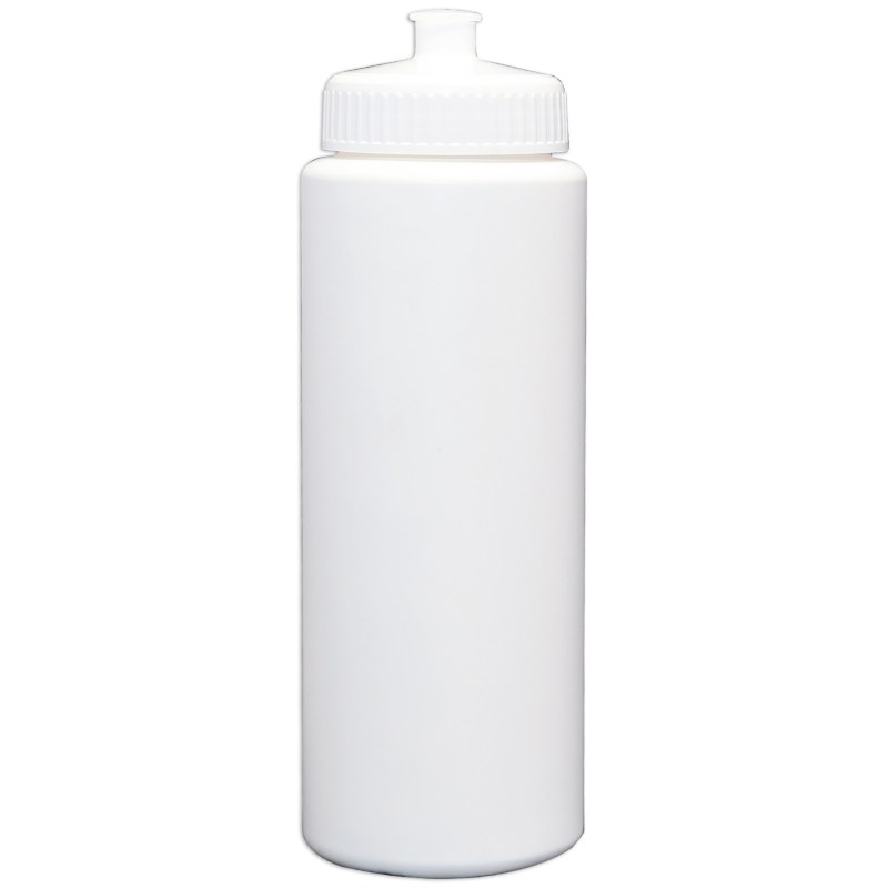32 Oz. White sports bottle with push pull Lid. BPA and Lead Free. 100% Recyclable. Unassembled, lids packed separately. USA Made. Actual weight 20 lbs. Carton ships ground as Class-1 Oversized at 66 lbs. Hand Wash Only. 9.5″ H x 3.25″ W. 9.5″ H x 3.25″ W