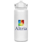 Stay hydrated all day long with the 32oz. Double-wall stainless steel vacuum insulated tumbler. This tumbler is designed to keep your drinks cold for up to 24 hours and hot for up to 12 hours, making it perfect for any beverage, no matter the temperature. The soft matte colors and durable powder-coated finish give it a sleek and stylish look that is perfect for on-the-go use. The plastic screw-on lid features an internal plastic straw and a swivel silicon handle for easy carrying. The lid also has a flip-up spout and a silicone seal for convenient drinking, as well as a reusable straw for eco-friendly sipping. With additional optional imprint areas for customization, this tumbler is a must-have for anyone looking to stay hydrated and stylish. Complies with ASTM, CCPSA, CPSIA, Prop 65. 10″ H x 3 5/8″ Diameter