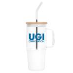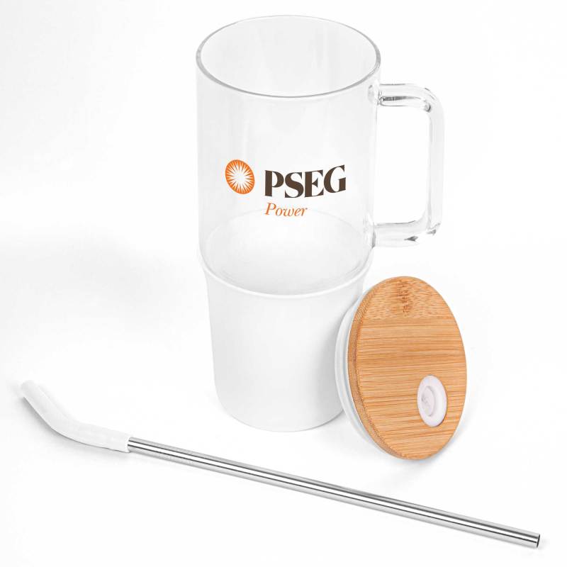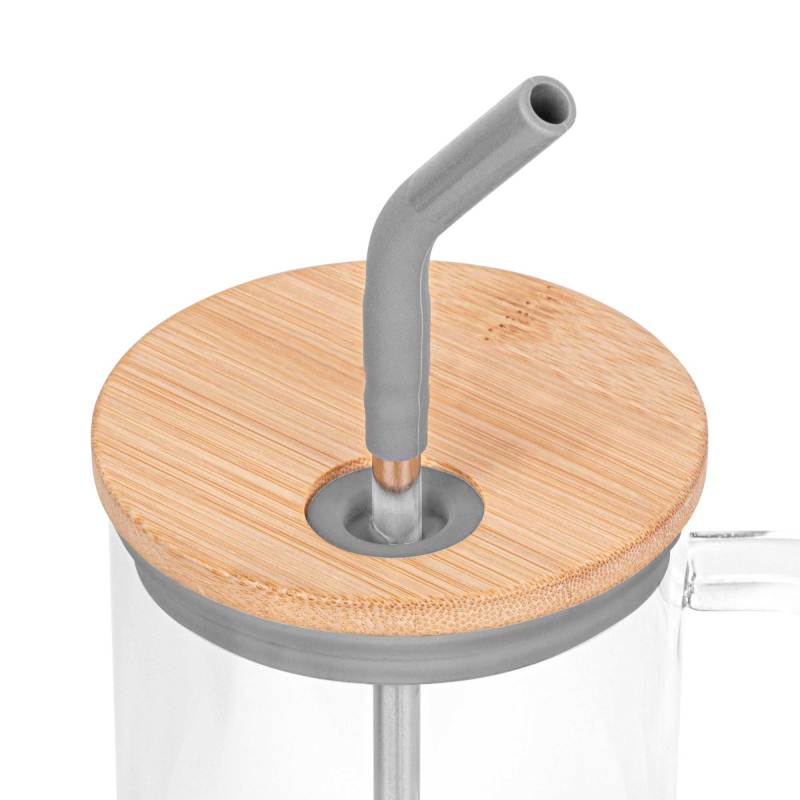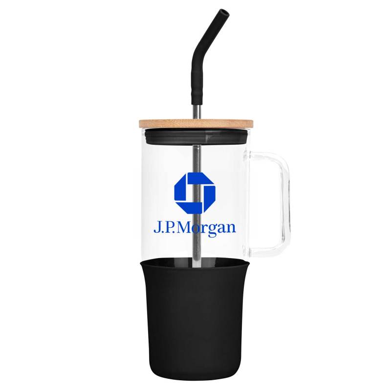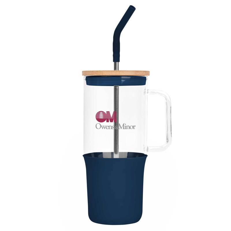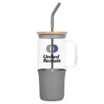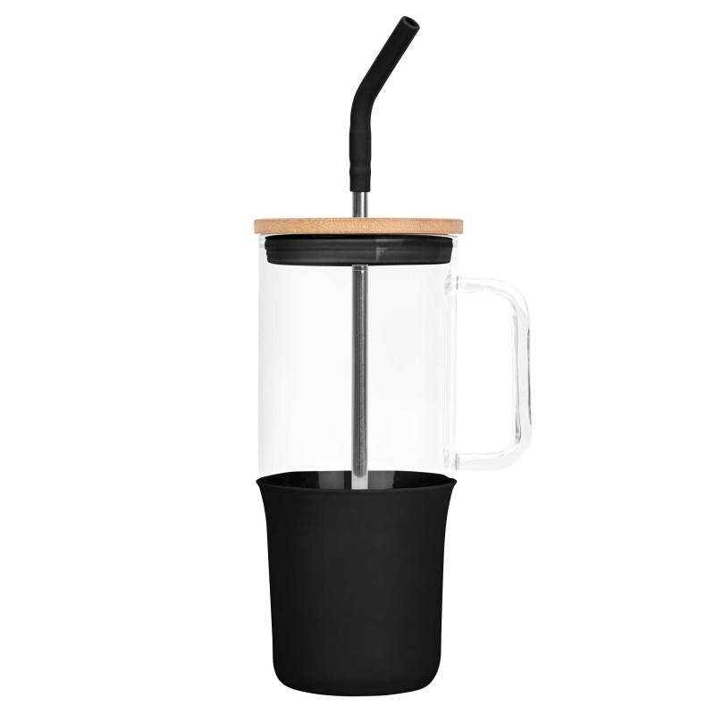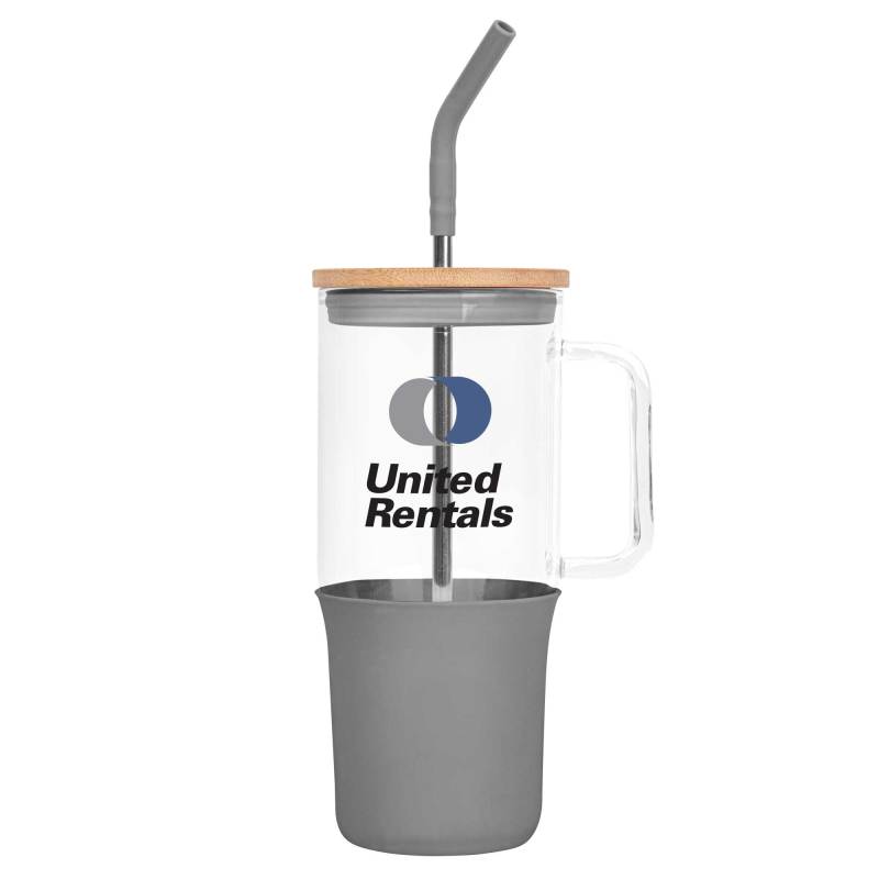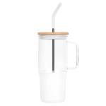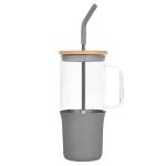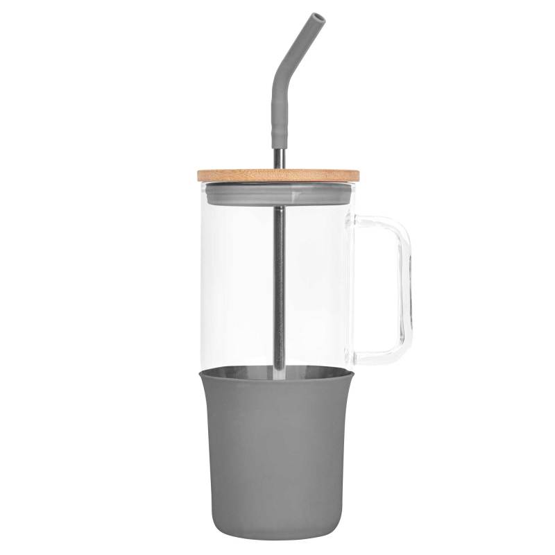 The borosilicate glass makes the tumbler Ideal for hot drinks up to 102 degrees Celsius. Comes with a silicone sleeve, metal straw with accented silicone tip and the bamboo lid features a spill-proof seal. Great for hot coffee, tea, ice cold water, smoothies and more! 5 3/4″ W x 9 1/4″ H
