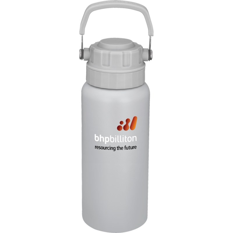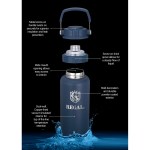 Adjustable metal handle Sweat-free design Features a screw-on plastic dual top for both wide opening and drinking spout Lead-free vacuum seal 1-year limited warranty Dual walled Stainless Steel construction Powder-coated finish Patented Copper lined, vacuum insulated liner maintains optimal 10X drinking temperatures. 3.5″ D x 4″ W x 10″ H