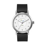 39mm stainless steel brushed silver case, japan 3-hand “solar” mvt, flat mineral crystal, black vegan apple skin strap, water resistant to 5 atm. Complies with Prop 65. 1″ W x 1″ H x 1″ D