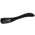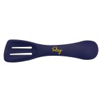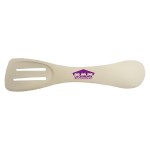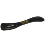 This universal tool features a spoon, slotted spoon, turner, and serrated edge for a variety of kitchen jobs. The durable nylon construction can be used on grill or stove top and will withstand short term exposure to temperatures up to 37S F. A great way to share “what’s cookin’ at any company and fun item to use at barbecue competitions, outdoor cooking events or to promote your favorite restaurant or resort. Top rack dishwasher safe. 10 7/8″ W x 2 5/8″ H x 1” D