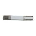 The 4-in-1 reversible Screwdriver includes 2 Phillips heads and 2 flat heads. Each bit is held in place by a magnet. Translucent color caps cover the heads on each end, 1 of which has a pocket clip. 5″ L x 7/8″ W