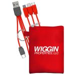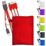 Elevate your charging experience with our sleek and versatile tall stretchy pouch in Black lycra. This pouch comes with a colorful 4-in-1 charging cable and multiple USB adapters, making it the ultimate solution for all your charging needs. Compatible with IOS devices, Micro USB, and Type C USB, this patented design ensures seamless connectivity. With both USB and Type C USB inputs, you can easily charge multiple devices at once. Say goodbye to tangled cords and hello to convenience with our innovative charging pouch. Complies with CE, FCC, Prop 65, UL. 3″ L x 3.75″ H