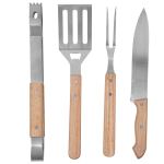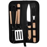 An expertly-crafted bamboo set of four grill utensils with an included polyester carry case. Features: four utensils: Knife, two-pronged fork, spatula and tongs, each handle on the utensils is crafted of durable bamboo and stainless steel, hand washing with warm water & soap is recommended, bamboo is a strong, durable wood that can be sustainably grown to reduce harm to the planet, bamboo products have natural anti-microbial properties. Complies with Prop 65. 15″ W x 5″ H