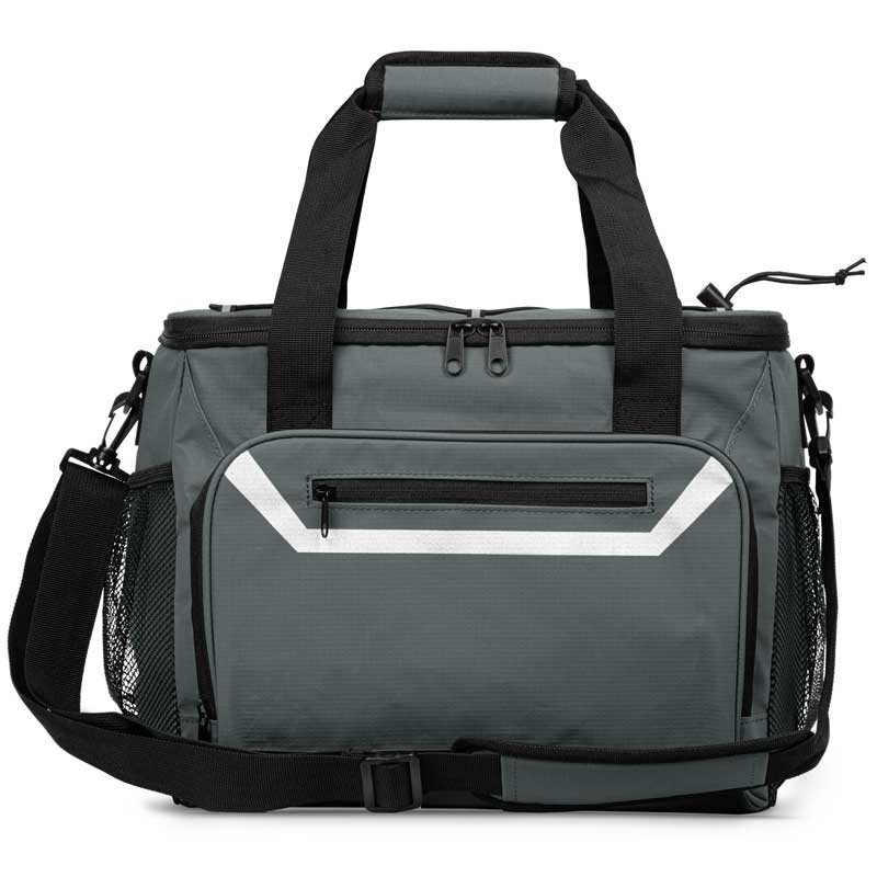 The 40-Can Bag Cooler features a zipper top with a criss-cross adjustable bungee cord. Complies with Prop 65. 16″ L x 12″ W x 11 1/2″ H