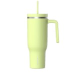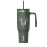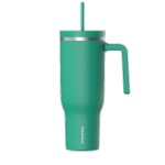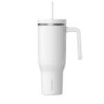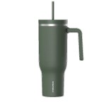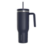 Hydrapeak, Voyager, Travel Mug, 40Oz, Stainless Steel, Double Wall, Vacuum Insulation, Powder Coated, Straw Lid, Leak Resistant, Carry Handle, Cup Holder, Cold 30 Hours, Hot 12 Hours, 36 Colors. 10.4″ H x 2.9″ W