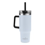 Stainless Steel Outer And Inner Stainless Steel Tumbler With Handle Powder Coated Finish Double Wall Construction For Insulation Of Hot Or Cold Liquids. 10″ H