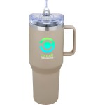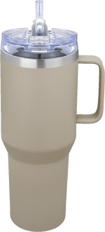 Dual walled Stainless Steel construction Sweat-free design Durable powder-coated finish with a Stainless Steel top rim NOTE: Straws will ship in bulk inside the box, not assembled inside of drinkware Includes one clear Tritan straw Lead-free vacuum seal Features a push-on, AS plastic flip top with Tritan snap locking closure lid and straw hole 1-year limited warranty Sturdy Stainless Steel handle Copper lined, vacuum-insulated liner maintains optimal 12X drinking temperatures. 5.5″ D x 4″ W x 10.875″ H