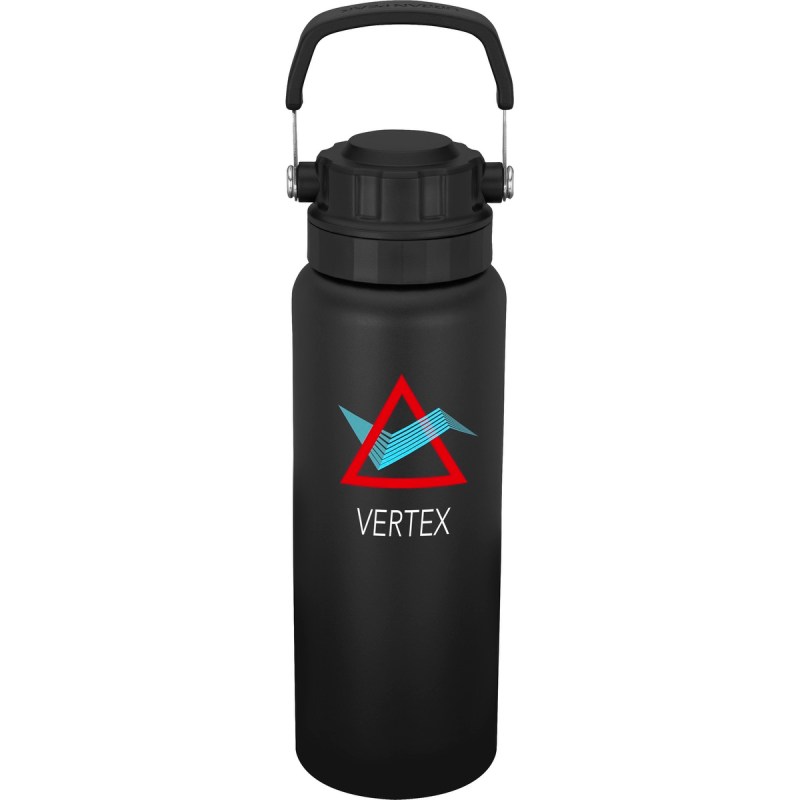 Copper lined, vacuum insulated liner maintains optimal 10X drinking temperatures. Dual walled Stainless Steel construction. Lead-free vacuum seal. Features a screw-on plastic dual top for both wide opening and drinking spout. Adjustable metal handle. Sweat-free design. Powder-coated finish. 1-year limited warranty. Patent pending. 11.125″ H x 4″ W x 3.5″ D