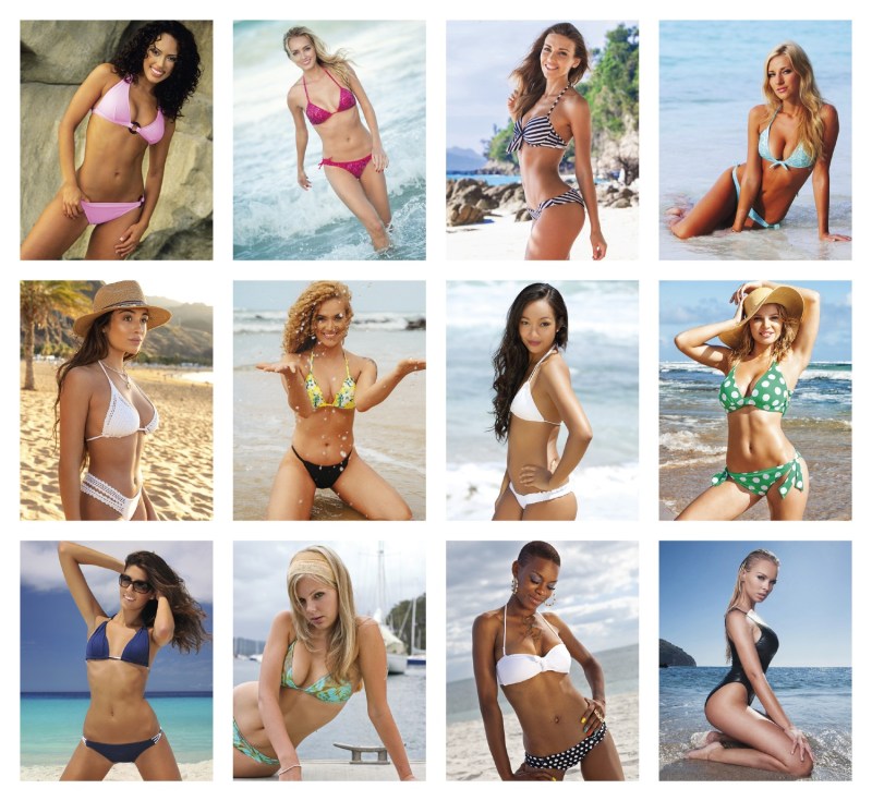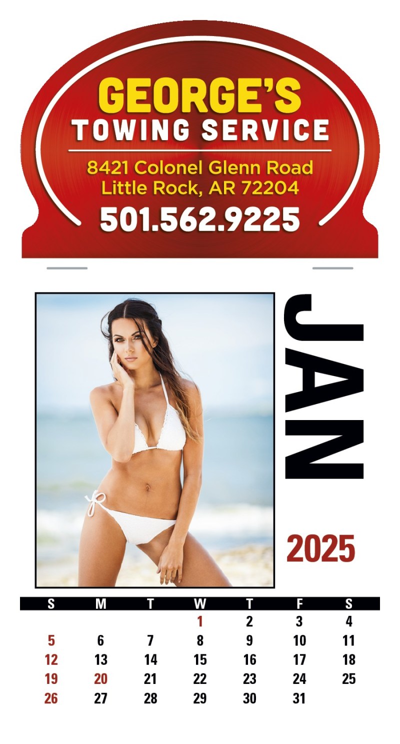 The 4C Press-N-Stick Header Sunshine Girls Calendar showcases female models in swim attire for 13 months from December 2023 to December 2024.