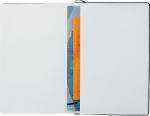 The 5.5” x 8.5” FSC® Mix Ambassador Bound Journal is a hard cover bound journal with 80 sheets of cream lined FSC® Mix paper. The Journal features built-in elastic closure, ribbon page marker, and expandable accordion pocket. 0.50″ D x 5.50″ W x 8.38″ H