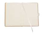 The 5.5” x 8.5” FSC® Mix Eco Color Bound Journal features a hard bound cover made from recycled paper. This notebook includes 80 sheets of FSC® Mix lined paper with color accent painted edge pages and color matching built-in elastic closure. The 5.5” x 8.5” FSC® Mix Eco Color Bound Journal includes a pen loop, ribbon page marker, and expandable accordion pocket. Through a partnership with 1% For The Planet, one percent of sales of all EcoSmart® products are donated to environmental nonprofits. Due to the nature of the material, there may be color variances. 0.55″ D x 5.67″ W x 8.50″ H