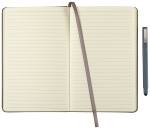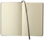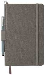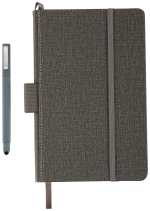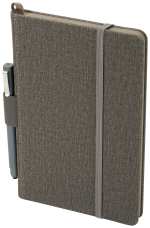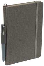 The 5.5” x 8.5” FSC® Mix Heathered Hard Bound Journal features a color matching elastic pen loop and color matching elastic closure. This hard bound journal features a heathered polyurethane hard cover and ribbon page marker. The Heathered Hard Bound Journal includes 80 sheets of cream lined FSC® Mix paper with color matching painted edges. Pen not included. 0.59″ D x 5.32″ W x 8.27″ H