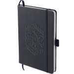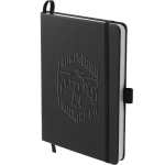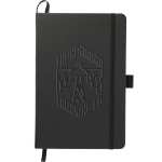 The 5.5″ x 8.5″ FSC® Mix Mela Bound Journal features a uniquely crafted hard cover with 39% of apple components. Color-matching elastic closure, pen loop and ribbon page marker. Includes 80 sheets of FSC® Mix white lined recycled paper and back document pocket. Through a partnership with 1% For The Planet, one percent of sales of all EcoSmart® products will be donated to environmental nonprofits. 0.56″ D x 5.62″ W x 8.38″ H