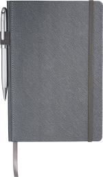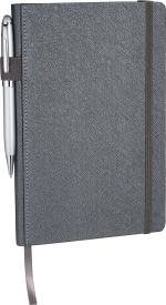 The 5.5” x 8.5” FSC® Mix Modena Bound Journal features a premium, textured hard cover. This custom notebook includes an elastic pen loop on the spine and elastic closure. The Modena Bound Journal features a ribbon page marker, back document accordion pocket, and 96 white lined sheets of FSC® Mix paper with color-matching painted edges. 0.86″ D x 5.70″ W x 8.46″ H