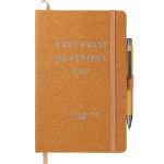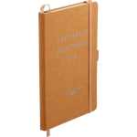 The 5.5” x 8.5” FSC® Mix Recycled Leather Bound Journal features a recycled leather hard cover and 80 sheets of lined FSC® Mix paper. This stylish, eco-friendly Journal features color-matching elastic closure, pen loop, and ribbon page marker. The Recycled Leather Bound Journal includes a back document pocket to store important notes. Through a partnership with 1% For The Planet, one percent of sales of this and all EcoSmart products will be donated to nonprofits dedicated to protecting the planet. 0.51″ D x 5.31″ W x 8.26″ H