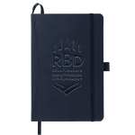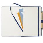 The 5.75” x 8.5” FSC® Mix Pedova™ Pocket Bound Journal features a stitched hard cover, elastic pen loop, and built-in elastic closure. Includes a corresponding cover color ribbon page marker and expandable accordion pocket. Includes 80 sheets of FSC® Mix white lined paper. Pen is not included. 0.63″ D x 5.75″ W x 8.38″ H