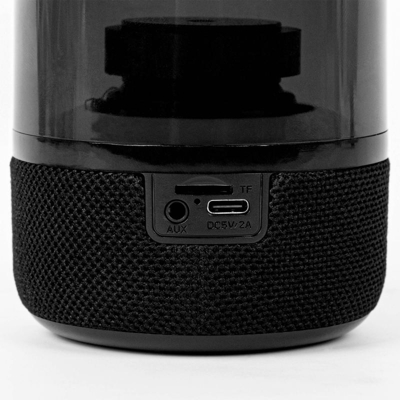 Enjoy music, podcasts, you name it and with powerful sound quality! Features: 5 watts, 1200mAh. Multi-function interface, including play, pause, phone functions, volume & shuffle. Play sound with Multi-color LEDs on or off. 3.5mm auxiliary jack for wired connectivity if desired. Type-C connector (DC5V-1A) for charging (cord included). TF (TransFlash) card slot for playing of music files (card not included). 4 1/2″ H x 3 1/4″ Diameter