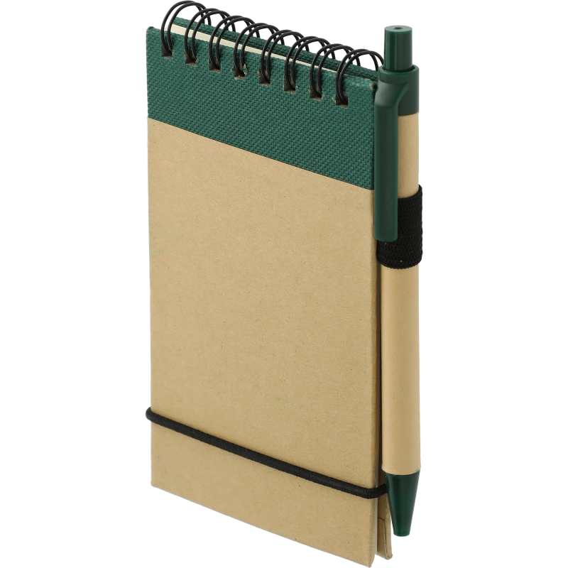 The Bullet 5” x 4” FSCĀ® Mix Recycled Jotter with Pen features a recycled cover and includes a matching ballpoint pen with a recycled barrel. Please note that pens are packed separately from notebooks. It also features a plastic band closure, an integrated pen loop, and 60 ruled sheets of FSCĀ® Mix paper to record your important notes. Through a partnership with 1% For The Planet, one percent of sales are donated to environmental nonprofits. Due to the nature of the material, there may be color variances. 0.36″ D x 3.00″ W x 4.88″ H
