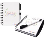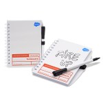 This dry-erase spiral journal puts a unique twist on a classic promotional giveaway. A full color process imprint cover leaves you all the possibility to be creative for your brand. This journal features a write-on/wipe-off glossy dry-erase cover and a dry-erase pen for writing and drawing on your cover. It comes with 100 sheets of lined, blank, euro dot, or graph paper to cater to your specific notetaking or sketching needs. Customize with an imprint of your brand logo and wipe your competition. Complies with Prop 65. 5″ W x 7″ L