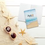 Elegant and durable notebook featuring a sewn bound paper cover, containing around 30 lined pages. Proudly Made in the USA, utilizing FSC® Certified paper for both the cover and pages. Supplier certificate code: MIX ESTS-COC-220677. The cover is adorned with a charming seaside theme, adding a touch of sophistication to your note-taking experience. Complies with Prop 65. 5″ L x 7″ H