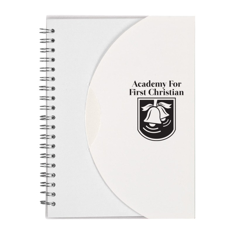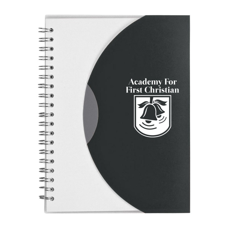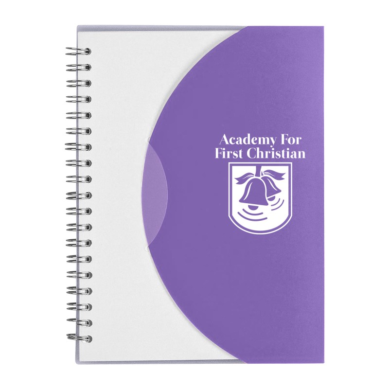 80 Page Lined Notebook. Polypropylene Cover. Complies with Prop 65. 5.5″ W x 7″ H