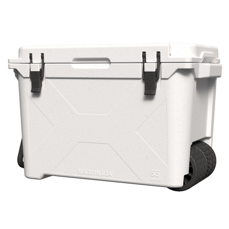 The Bison Coolers 55qt Wheeled Cooler combines rugged durability with convenient portability. Designed for outdoor adventures, it features heavy-duty wheels, a sturdy handle, and superior insulation to keep your drinks and food cold for days. Perfect for camping, tailgating, or backyard BBQs, this cooler is built to withstand the elements while offering easy transport and reliable performance. 30″ L x 16″ W x 20″ H