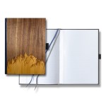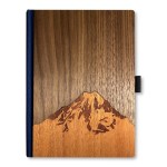 Premium 5×7 Wooden Journal, Planner, Notebook with PU Leather & Real Wood Cover. quality paper, 144 Pages (72 Sheets). Lined pages. Built-in pen holder. Laser engraving available on front & back. Satin bookmark with wood covered tab for engraving text or small logo. Tab Engraving Area 0.6″ square. Individual personalization available; see customization options. Handcrafted in Hidden Springs, Idaho, USA. Complies with Prop 65. 5″ W x 7″ H x 0.5″ Thick