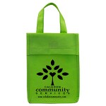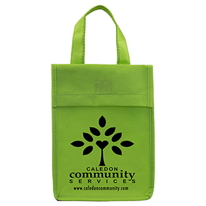 This Reusable lightweight 80GSM non-woven non-insulated 3 ½” Gusset Lunch Tote bag is full of attitude. Secure your meals with the foldable flap and hook and loop fastener closure. Available with a PhotoImage® Full Color Imprint. Photoimage ® Full Color Imprint Includes: up to a Full Color Imprint. Exact color match cannot be achieved. Product Size: 6-1/2″ W x 9″ H x 3 ½” Gusset Handle: 10-1/2″ L. Lime Green – Back In Stock Mid January. Complies with CPSIA, Prop 65. 6 1/2″ W x 9″ H