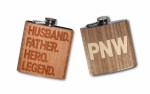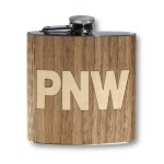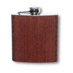 6 Oz. stainless steel wooden hip flask covered in real wood. Our 6 Oz. stainless steel flasks are wrapped in hand cut, high-quality, 100% real wood locally sourced right here in the United States for superior finish, quality and durability. This wooden flask with a sturdy stainless steel body is a simple and a cost friendly gift. Handcrafted in Hidden Springs, ID. Individual personalization available; see customization options. Complies with Prop 65. 3.875″ W x 4.625″ H x 1″ Thick