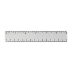 6″ plastic ruler with standard and metric scales. 1″ W x 6 3/16″ H x 1/8″ D