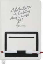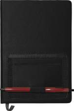 The 6” x 8” FSC® Mix Moda Notebook is an eye-catching, PU, hardbound journal with 80 sheets of cream lined FSC® Mix paper inside. It includes a color matching ribbon page marker and a front pocket that can hold a smartphone and has a business card slot. The Moda Notebook also has an elastic pen loop. 1.00″ D x 8.26″ W x 5.80″ H