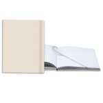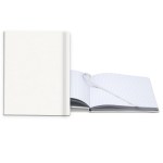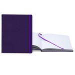 Senzabrite hard cover (turned edge) available in 9 colors with 1 location deboss or foil Library quality Smyth sewn “lay-flat” binding80 sheets (60# paper white lined, graph, dot grid, or blank)Elastic closure and ribbon bookmark (available in 9 colors). Complies with Prop 65. 8″ W x 10″ L