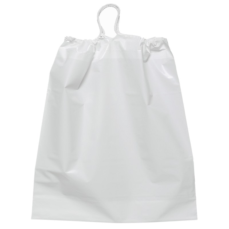 These low-density plastic bags feature a cotton-draw handle to cinch the top closed. Bottom gusset is available on select sizes. Complies with CPSIA, C-TPAT, FDA, Prop 65. 9 1/2″ W x 12″ H
