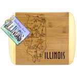 Savor a slice of this State with this beautiful bamboo serving and cutting board with artwork inspired by its cities, places and people. Fun, whimsical artwork features many of the wonderful sights and places. Beautiful flat grain bamboo, laser etched side serves as an ideal serving platter and the reverse smooth side is a great cutting surface; It’s friendly on knives and hand wash only. Bamboo is better for the environment; Moso® bamboo is incredibly durable. Complies with Prop 65. 11″ W x 8 3/4″ H x 1/2″ Thick