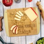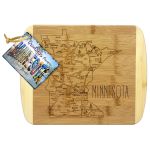 Savor a slice of this state with this beautiful bamboo serving and cutting board with artwork inspired by its cities, places and people. Fun, whimsical artwork features many of the wonderful sights and places. Beautiful flat grain bamboo, laser etched side serves as an ideal serving platter and the reverse smooth side is a great cutting surface; It’s friendly on knives and hand wash only. Bamboo is better for the environment; Moso® bamboo is incredibly durable. Complies with Prop 65. 11″ W x 8 3/4″ H x 1/2″ Thick